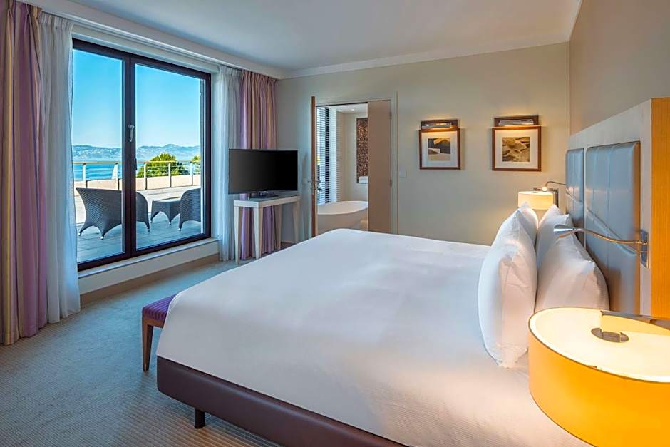 These suites have a separate living room and a bedroom with a private balcony overlooking the lake. They feature a flat-screen TV, ironing facilities, a mini-bar and tea/coffee making facilities. Slippers, a bathrobe and free toiletries are provided. This room includes access to the spa and to the Executive Lounge, which offers a complimentary breakfast and refreshments. One sofa or extra bed can be accommodated in this room upon request.